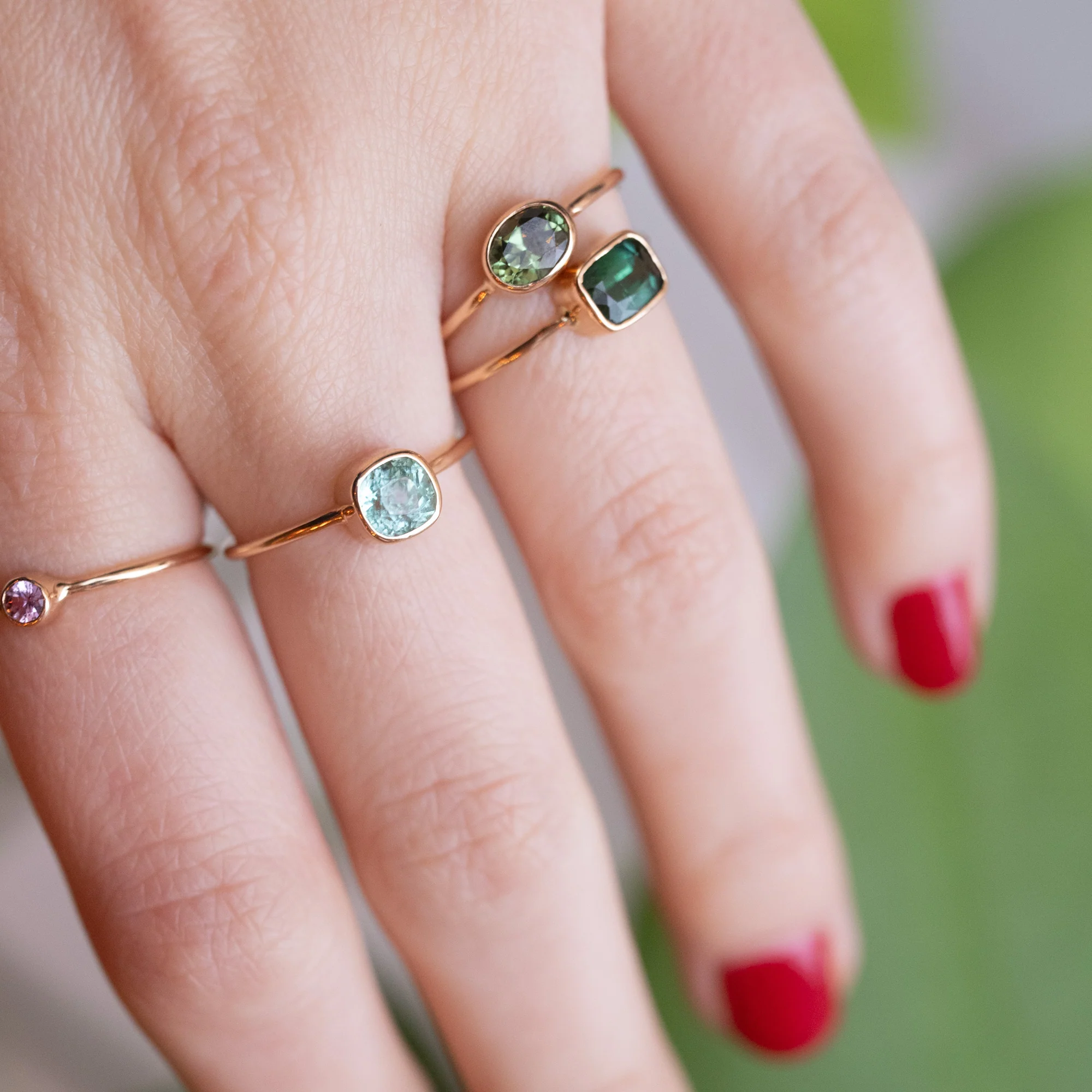 LES BONBONS is an eclectic, playful series that celebrates personal style and colorful symmetry. Fully customizable and stackable, it’s the perfect way to express your creativity. Whether as a unique engagement ring or a special addition to your collection, this beauty stacks effortlessly for a one-of-a-kind look.
